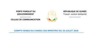 Compte Rendu du Conseil des Ministres du 26 Juillet 2018
