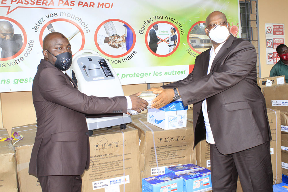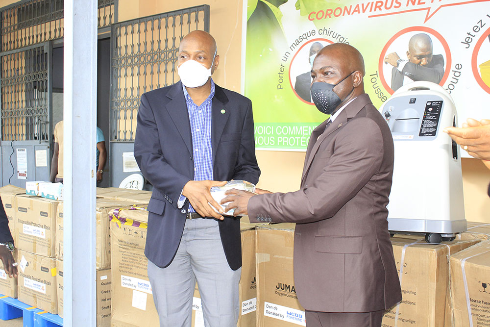 Le Ministre du Budget, Monsieur Ismaël Dioubaté a reçu ce mercredi 24 juin 2020 un important don d’équipements et de matériels sanitaires de la société Webb Fontaine Guinée. Le geste s’inscrit dans le cadre de l’accompagnement de la Guinée dans sa lutte contre la Covid-19. Ce don que le Ministre a ensuite remis aux autorités sanitaires, se compose de 15 concentrateurs d’oxygène, 450 kits de connexion pour les concentrateurs à oxygène, des filtres secondaires pour les concentrateurs à oxygène (2 par concentrateur pour maintenance) et 30 mille masques de protection.