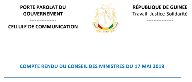 COMPTE RENDU DU CONSEIL DES MINISTRE du 17 mai 2018. Le Ministre du Budget a fait une communication relative au nouveau cadrage budgétaire 2018.
